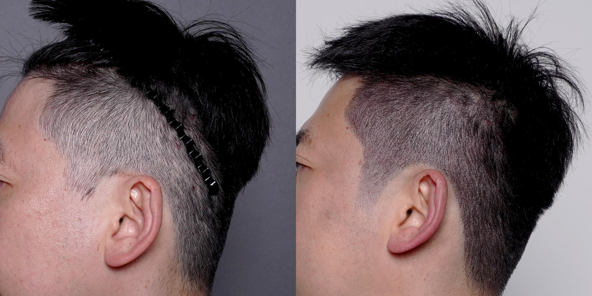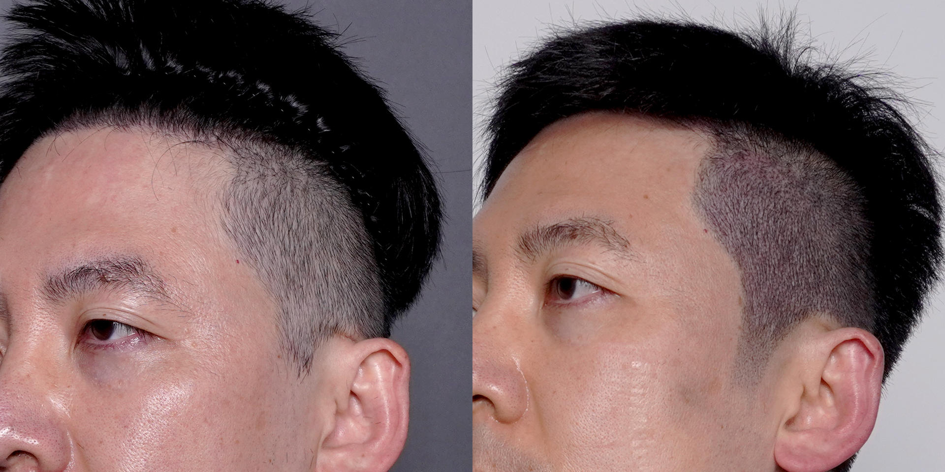 고객님의 니즈: 정수리 시술 없이 사이드 네이프 + 헤어라인 진하게